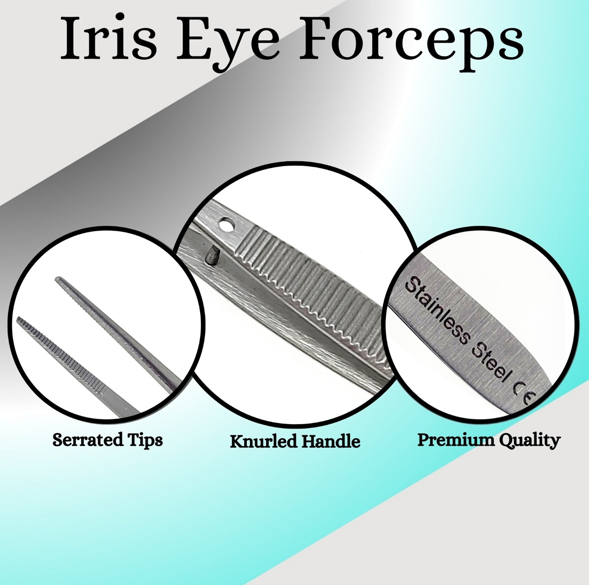 Iris Eye Dressing Dissecting Forceps 4" Fine Point Straight with Serrated Tips